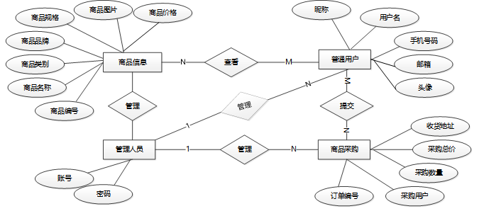 图2-4基于Python语言的商品采购系统的管理员角色用例图