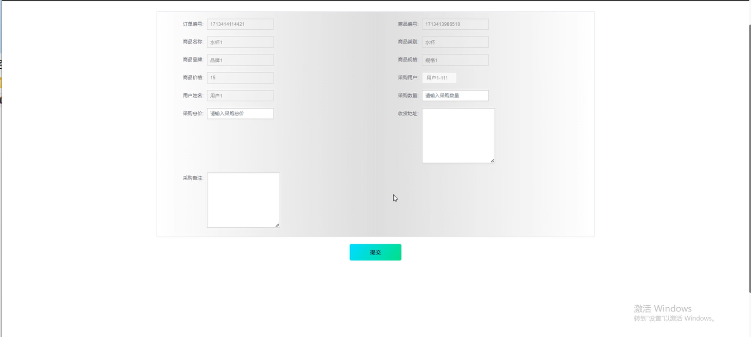 用户在商品信息详情页面点击“采购”后,可以提交商品采购信息,页面如图4-4所示。