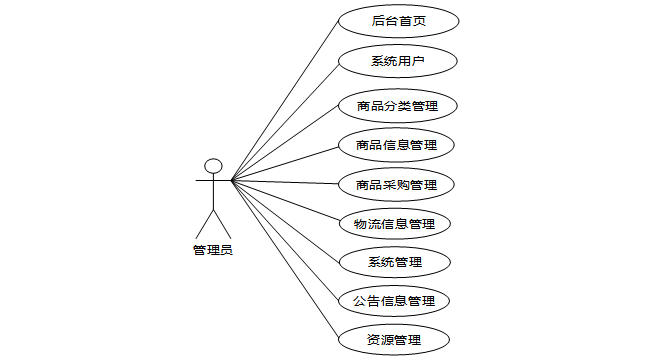 管理员是维护整个基于Python语言的商品采购系统的中所有数据信息的。管理员角色用例如图2-4所示。