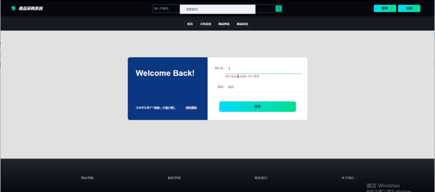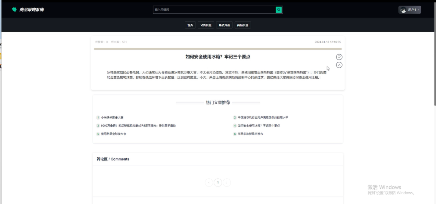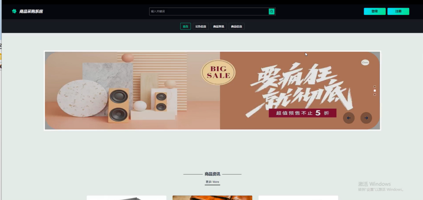 首页: 展示系统的重要信息、公告、热门商品等内容,引导用户浏览和采购商品。