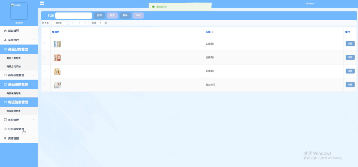 轮播图管理: 管理系统首页的轮播图信息,包括添加、编辑和删除轮播图图片。