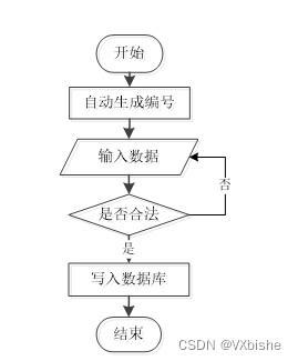 用户成功登入系统后就能够实现增加数据的操作,增加数据的编号是特定的,系统生成,用户不能随意填写,除了编号以外,其他增加信息用户自己填写,填写后的信息经过系统验证,验证合法通过就显示增加数据成功了,相反的话,就没有增加成功,图2-1显示的就是在增加数据时的流程。