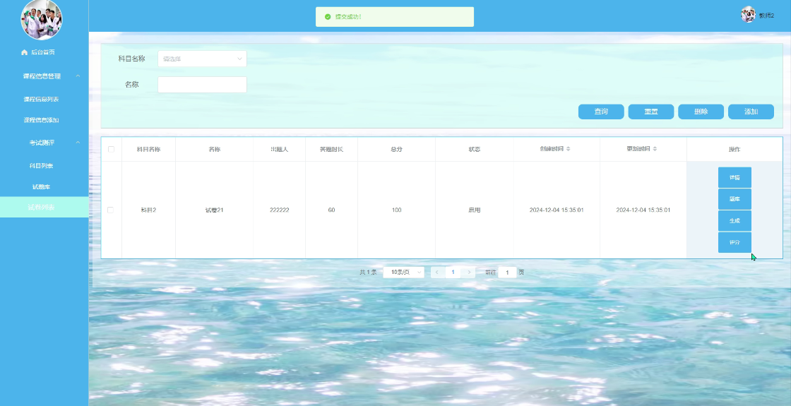 点击修改试卷列表,必填项修改为空,点击提交 |
