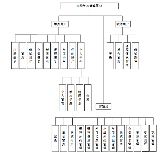 本在线学习管理系统设计分为三个主要用户角色:学员用户、教师用户和管理员。以下是对每个角色的功能需求的详细描述。