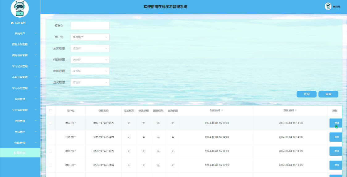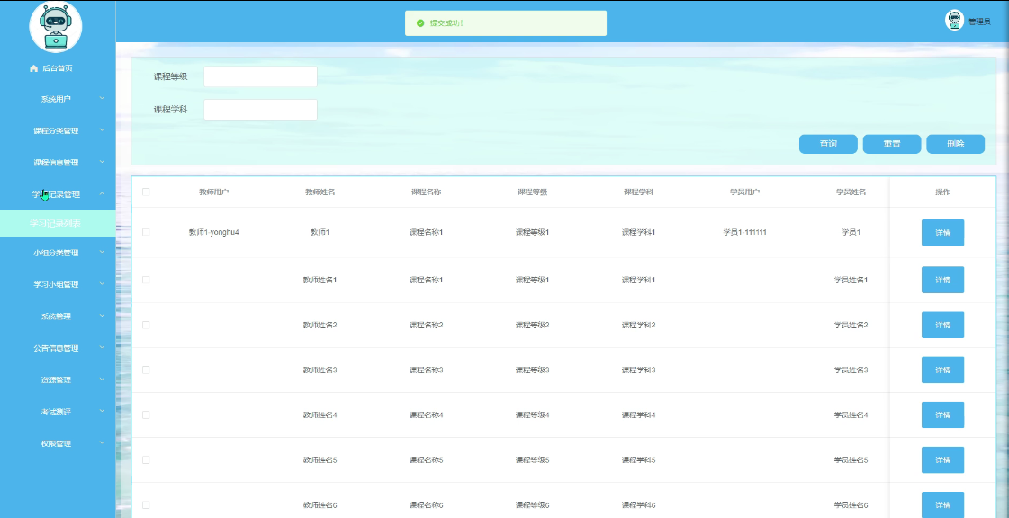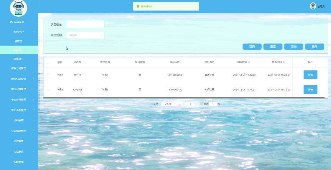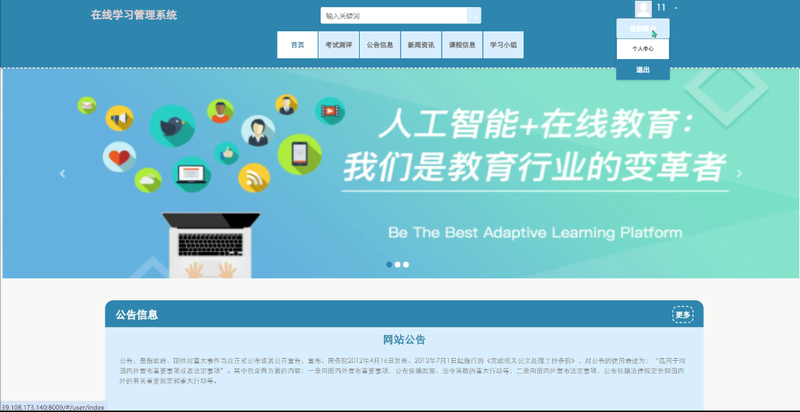 - 公告信息:提供系统相关的公告信息,保证学员用户及时了解平台动态。