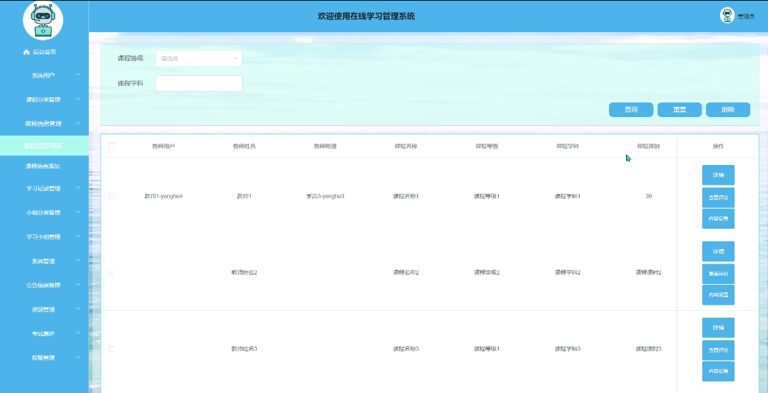 用于课程信息管理 | |