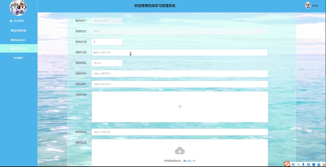 点击添加课程信息,必填项合法输入,点击提交 |