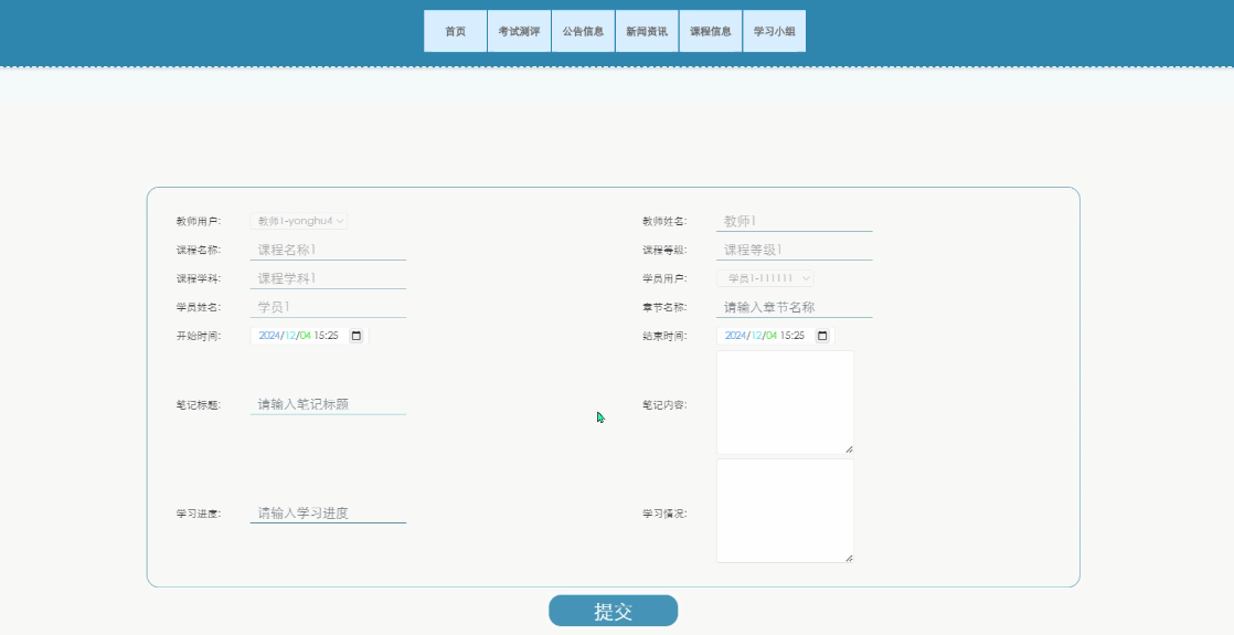 点击添加学习小组,必填项合法输入,点击提交 |