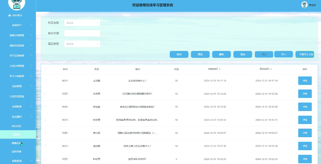 Keywords: online learning management system; Spring Boot framework; Java language; Online exam evaluation; Educational informatization