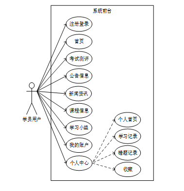 系统前台学员用户具体功能说明如下所示。