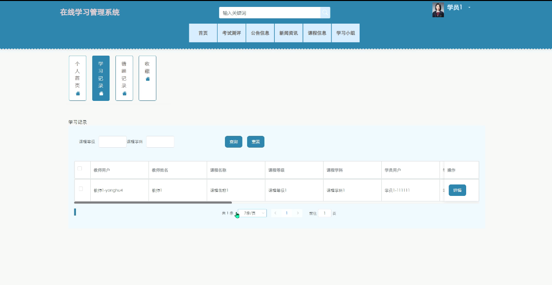 - 个人中心:提供个人首页、学习记录、错题记录、收藏等子菜单功能链接,学员用户可根据需求对其进行管理。