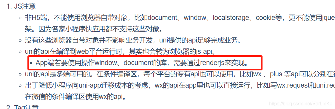 主要问题在于app端不能使用浏览器自带对象,比如document、window、localstorage、cookie等,更不能使用jquery等依赖这些浏览器对象的框架。事实上uni-app官网也有相关说明:区别于传统 web 开发的注意