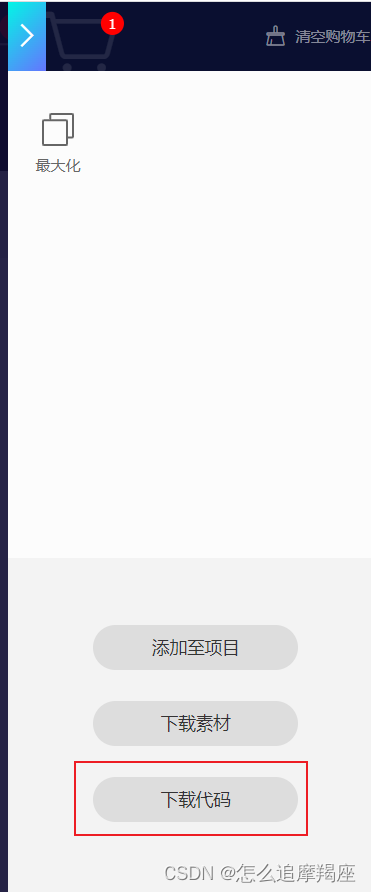 能看到刚才添加的图标,点击“下载代码”(需要注册登录)