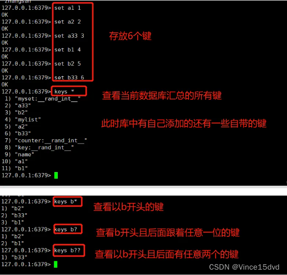 (2)keys 取值 : keys 命令可以取符合规则的键值列表,通常情况可以结合*、?等选项来使用