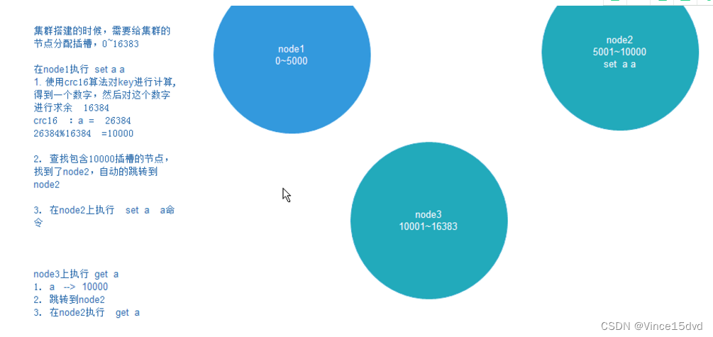每个Key通过CRC16校验后对16384取余来决定放置哪个哈希槽,通过这个值,去找到对应的插槽所对应的节点,然后直接自动跳转到这个对应的节点上进行存取操作