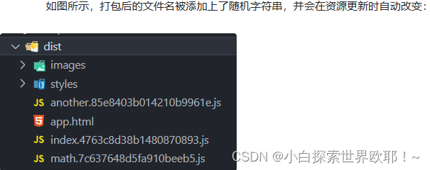 打包后的dist文件部署到服务器以后便能被浏览器客户端所访问,因浏览器的解析特性会优先选择缓存资源,我们要确保文件发生更新时浏览器能识别到,所以需要对输出文件的文件名做处理。