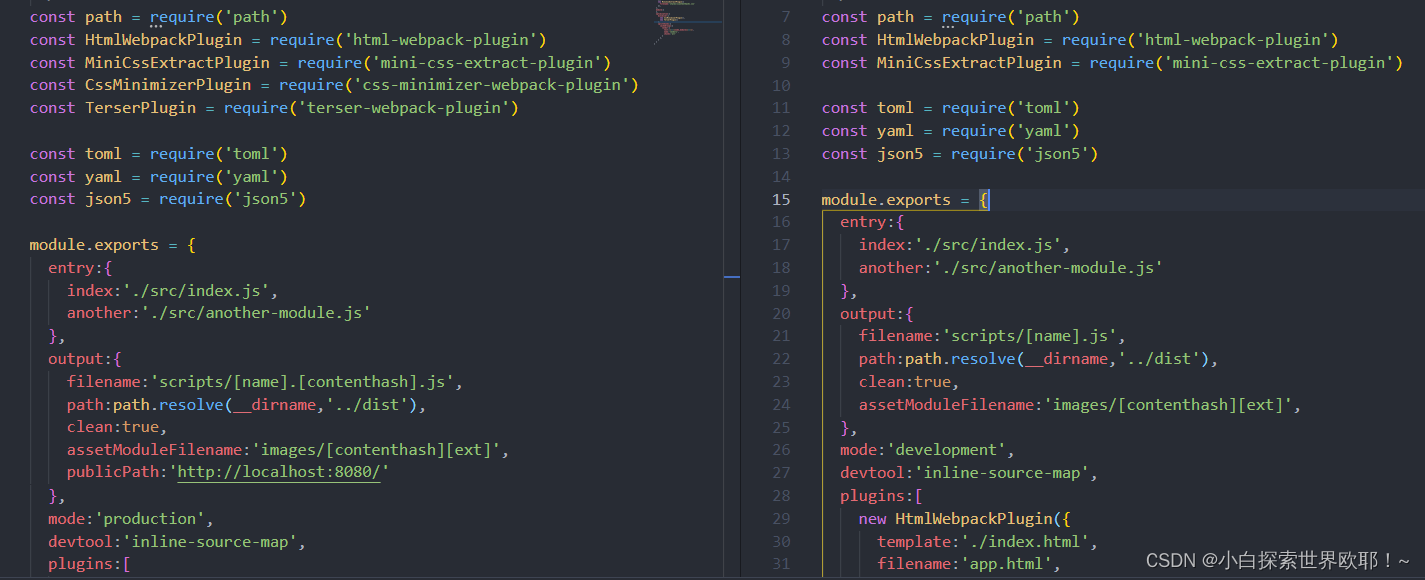 拆分出的配置文件存在大量重复配置代码时,可以单独创建一个公共配置文件,手动的将这些重复的代码单独提取到一个文件里。创建 webpack.config.common.js,配置公共的内容。