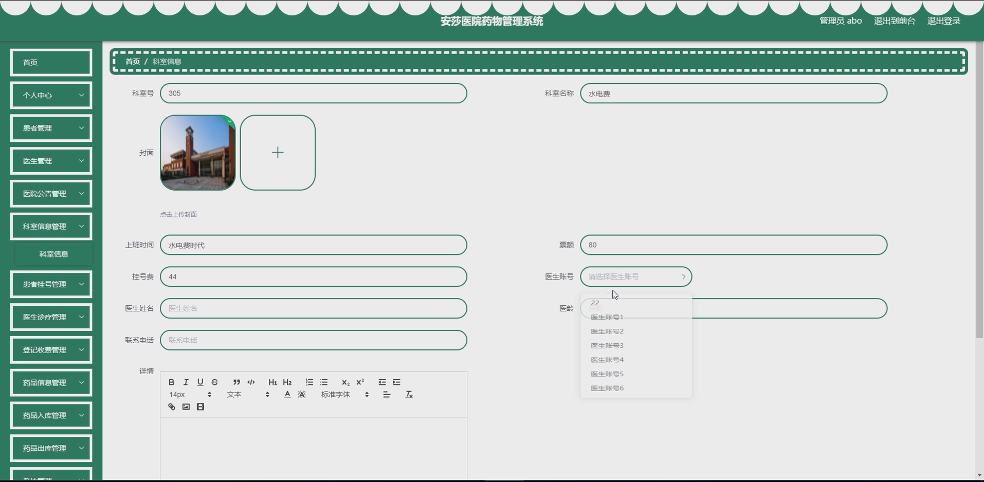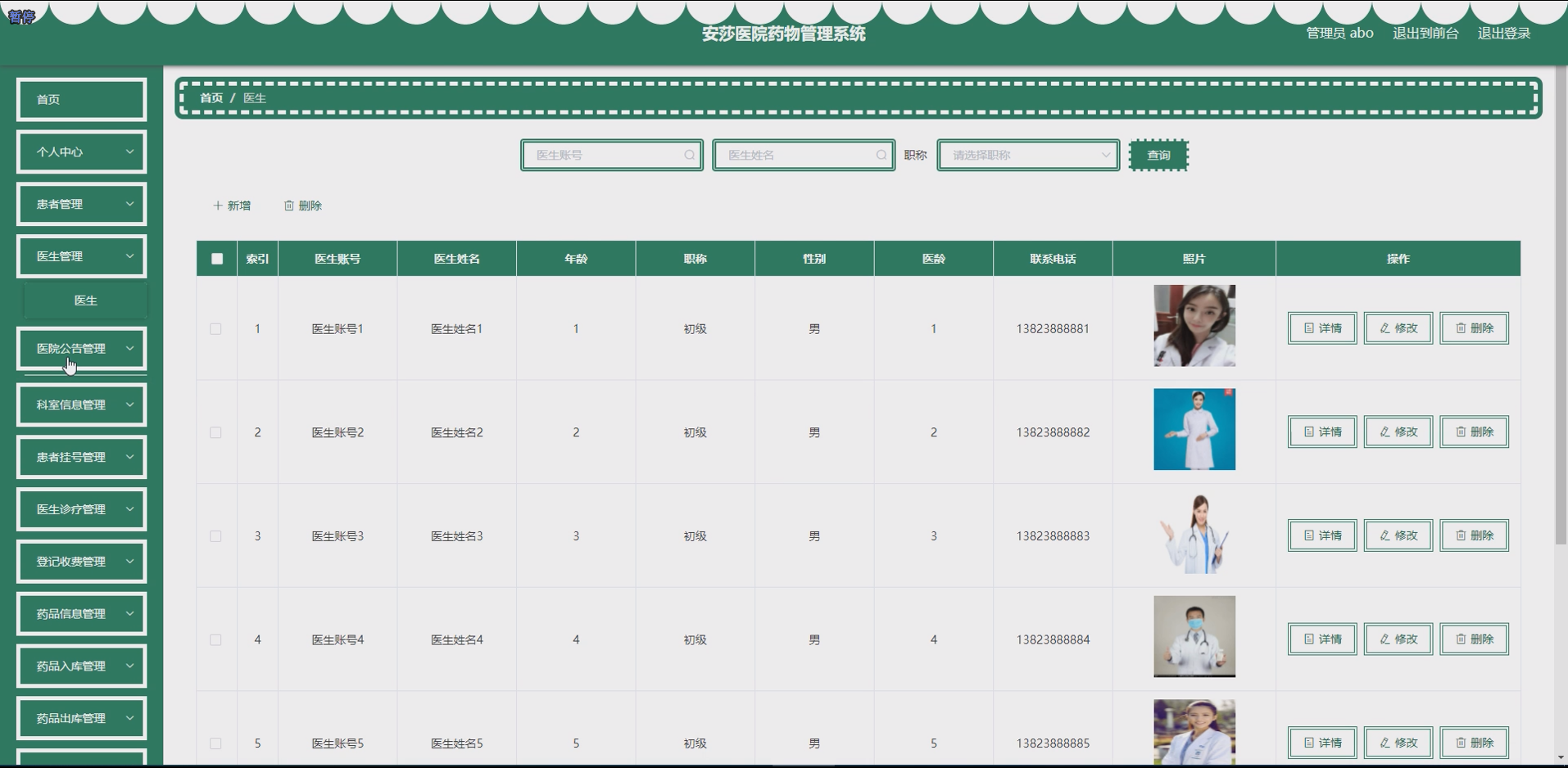 - 界面设计:采用 Vue.js、LayUI 等前端框架设计系统界面,注重界面的简洁性、美观性与易用性。根据不同用户角色(如管理员、药房工作人员、医生)设计个性化的操作界面,展示其常用功能模块,减少操作步骤。同时,确保界面响应式设计,支持在不同尺寸的设备上正常显示与操作。