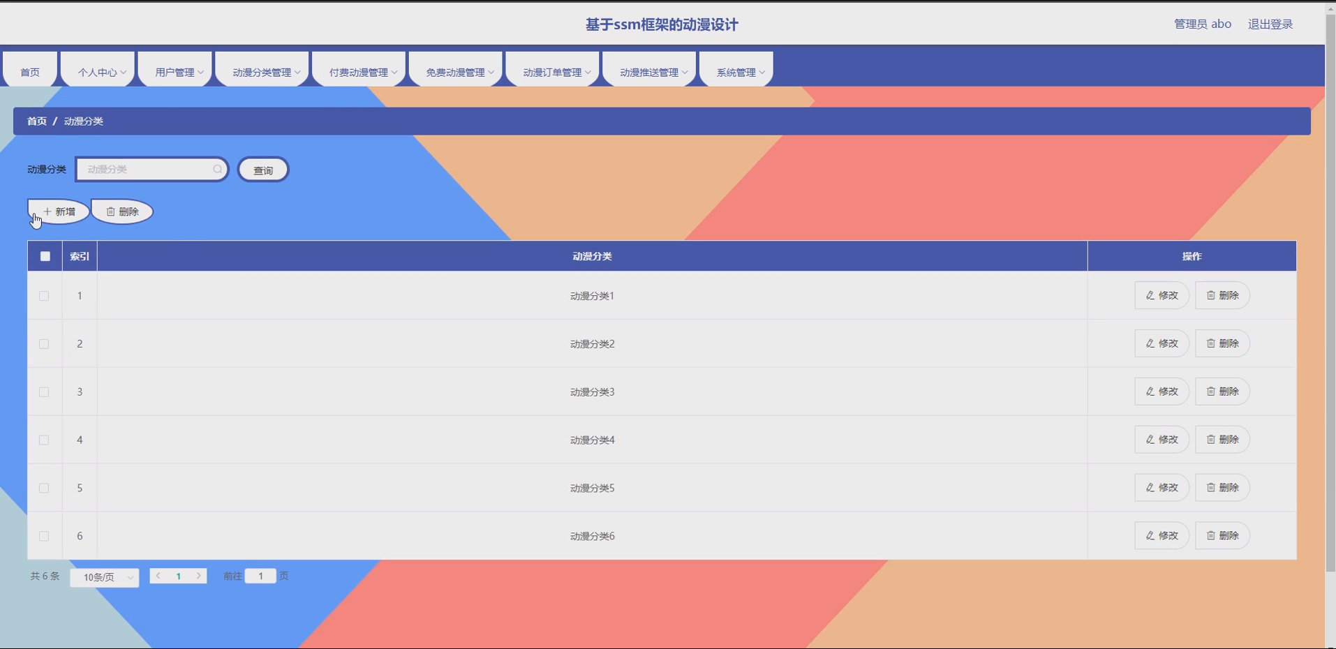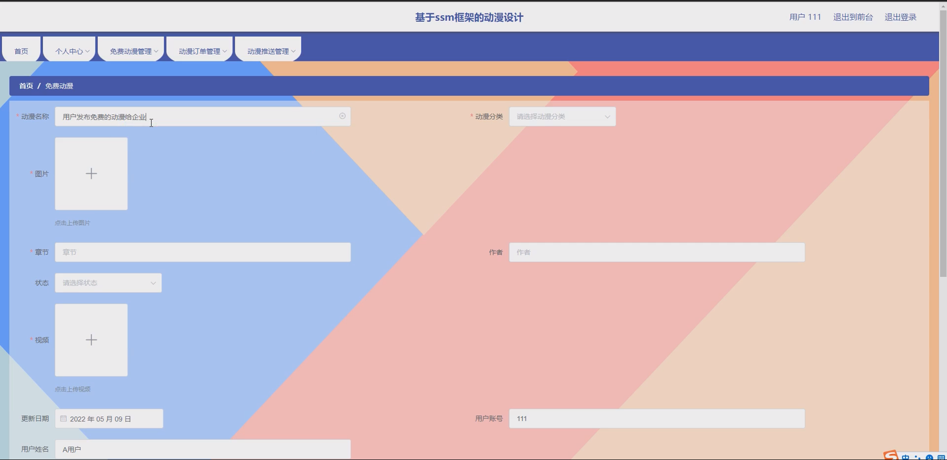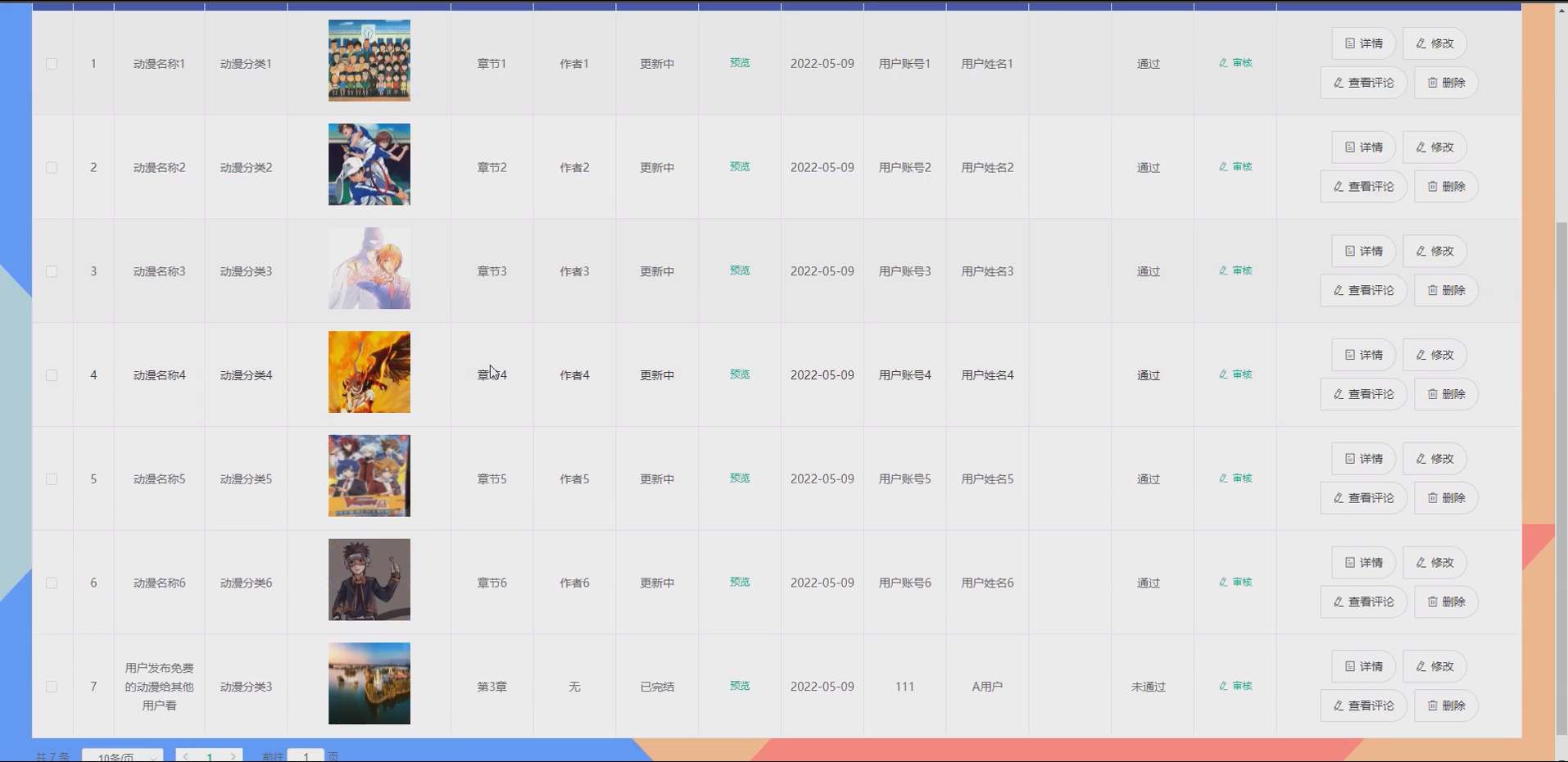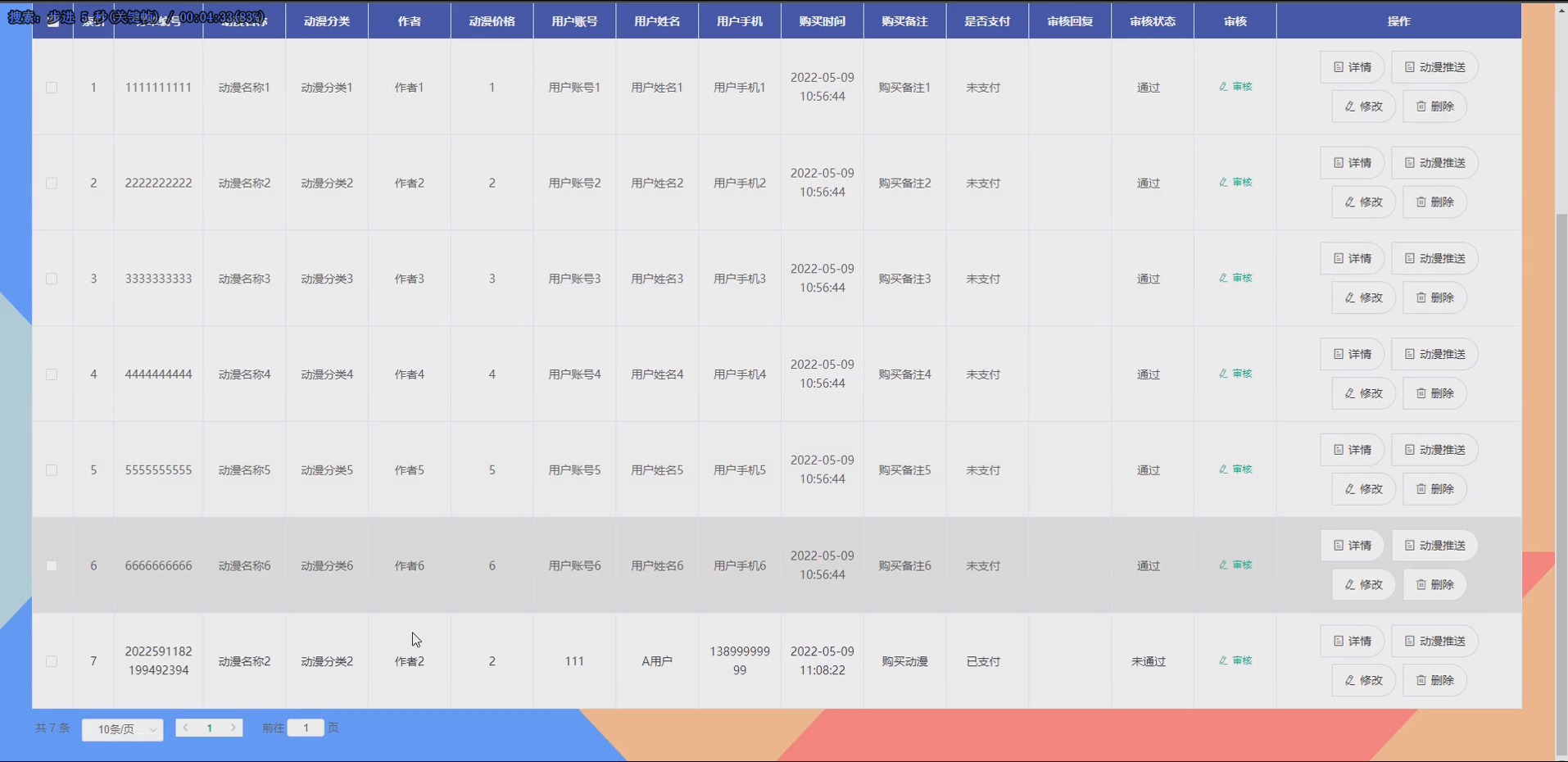 系统项目功能有:用户,动漫分类,付费动漫,动漫剪辑,动漫订单,动漫推送