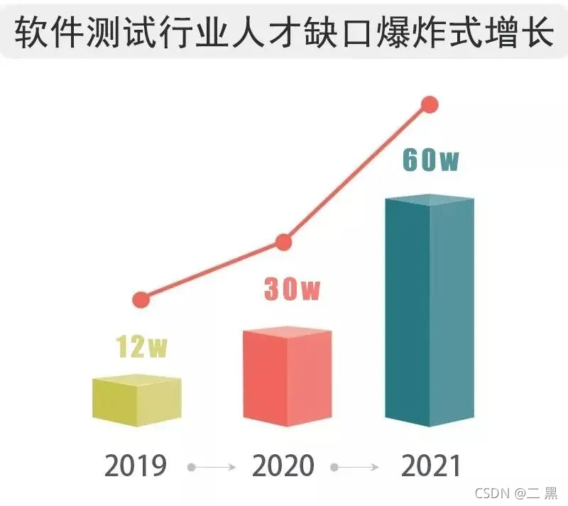 作为国内目前没有对口专业的一个岗位,软件测试行业的人才一直都处于极度稀缺的状态,尤其是中高级的软件测试工程师。据智联网最新数据统计,目前软件测试人才缺口已达60w,并且这个数据正在以每年20%的速率在增长。