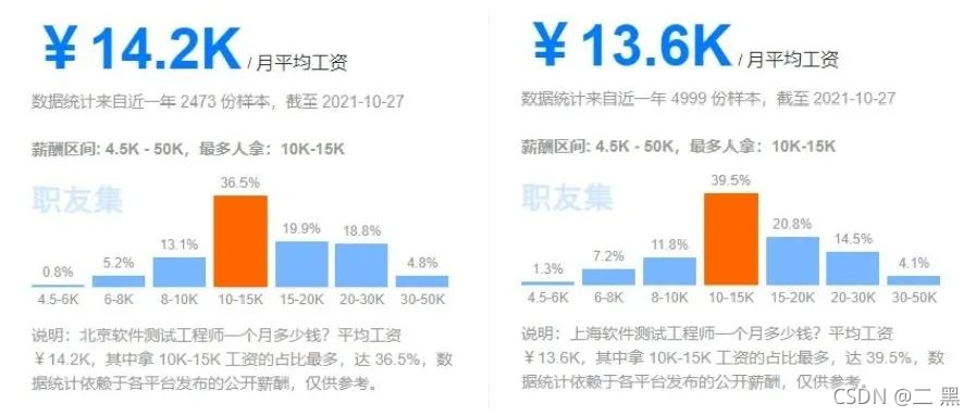 预计在未来10年内,国内IT企业对软件测试人才的需求还将继续增大。根据第三方数据平台统计,现软件测试人员的起薪普遍比较高。