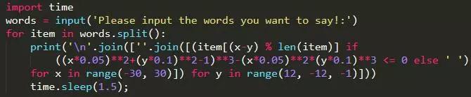 1、图形都是由一系列的点(X,Y)构成的曲线,由于X,Y满足一定的关系,所以我们就可以建立模型,建立表达式expression,当满足时,两个for循环(for X in range;for Y in range)就会每行每列的打印。