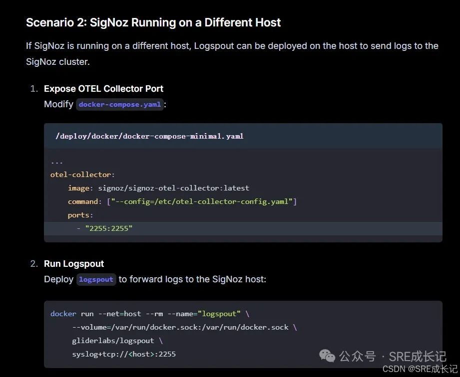 官方文档对于收集signoz之外主机的docker日志方案是这样的: