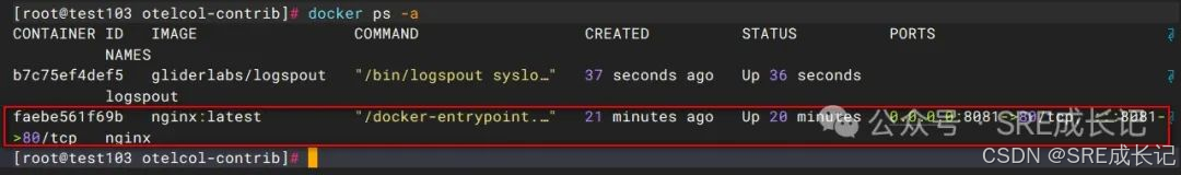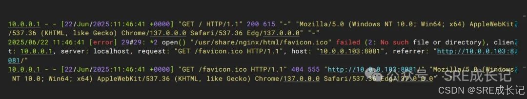 在web浏览器访问http://10.0.0.103:8081后,容器产生日志: