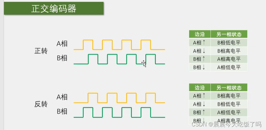 通过A,B相的边沿和另一相的高低电平来判断此时处于正转还是反转。