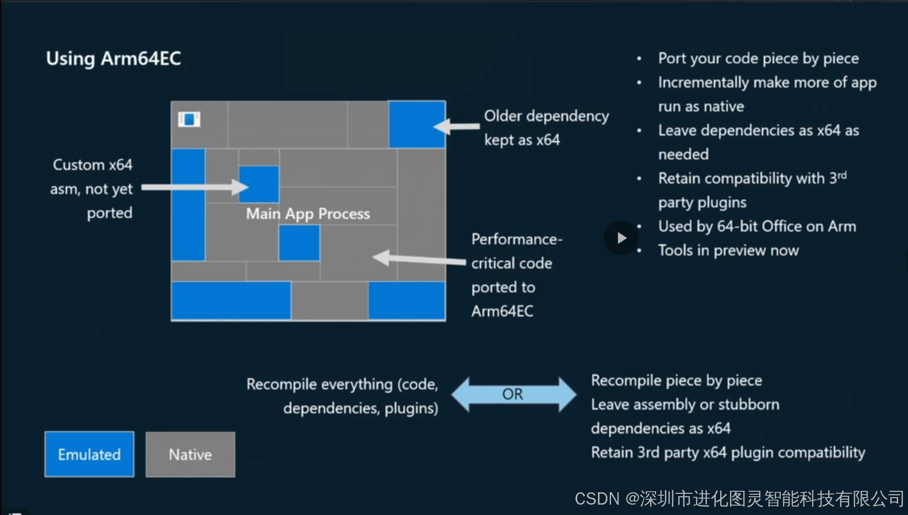 可以把性能代码,优先移植到ARM64EC ,部分代码库可以保留X64指令