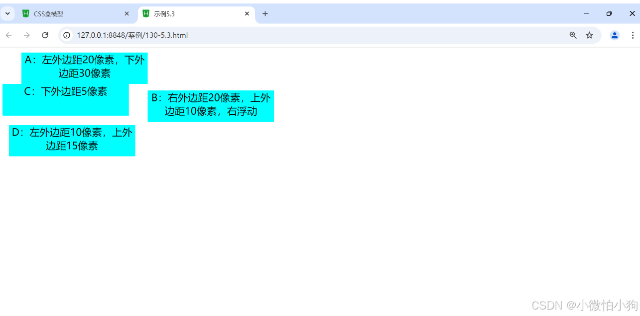 <div id="small1">A:左外边距20像素,下外边距30像素</div>