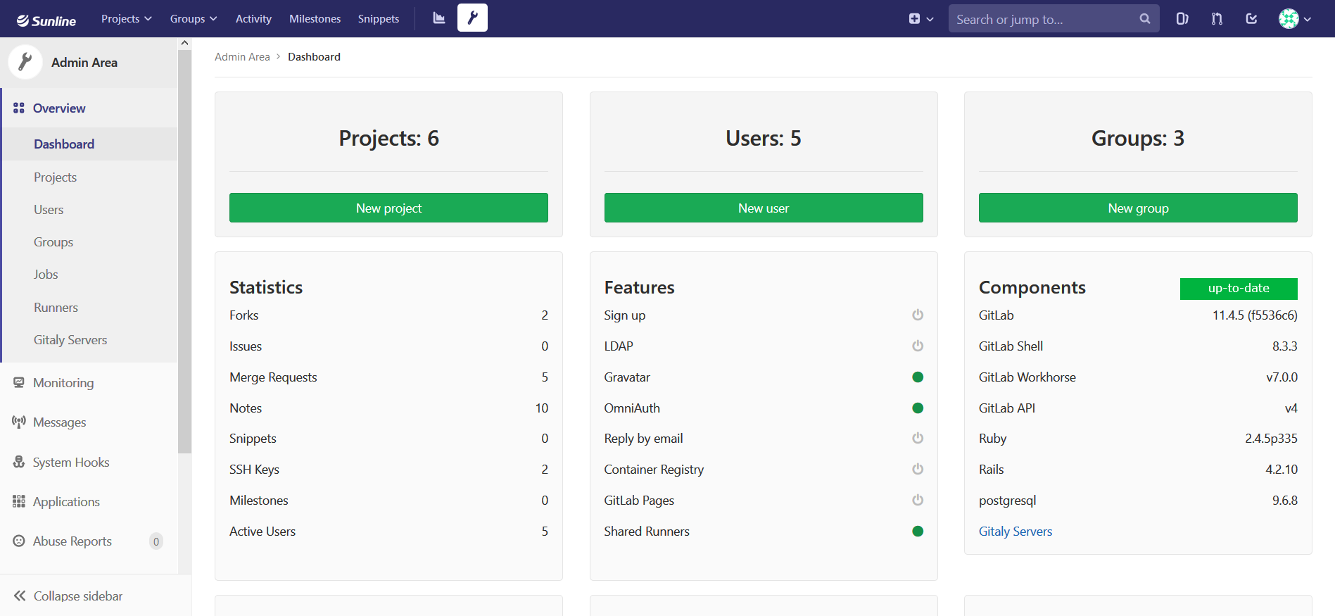 登陆后,可以看到,gitlab中主要围绕着以下几个概念进行操作: