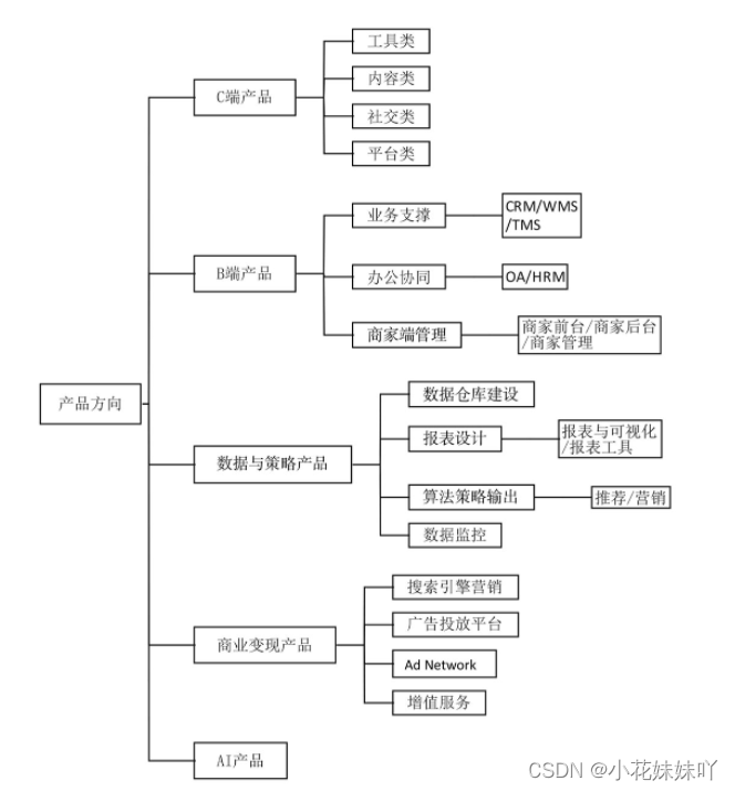根据服务对象,B端产品方向: