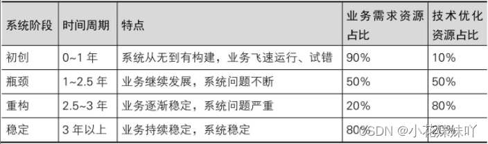 以只预留10%的资源做技术优化,甚至不做技术优化。只要研发团队的水平靠得住,一套全新的系统在全力运转的状态下对业务支持一年的时间,应该是绰绰有余的,而一年正好是验证业务是否能够存活下去的关键时间点。