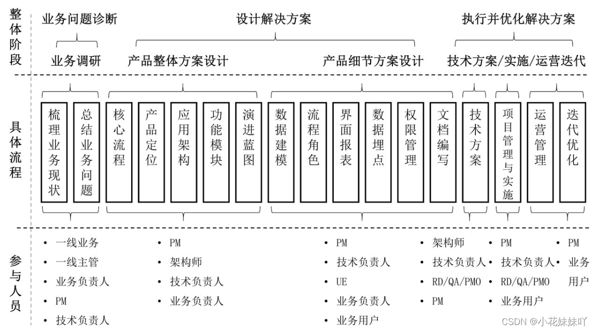 对内,对外,业务负责人,一线业务人员等角色进行访谈,获取全面信息。