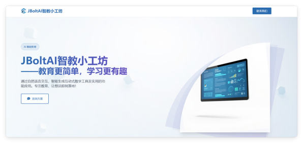 JBoltAI 智教小工坊以 “零技术门槛、高创意落地效率、全场景教学覆盖” 为特色,打破传统教育的技术壁垒,让 AI 真正融入教学全过程。从动态历史时间轴到物理实验模拟,从交互式数学解题工具到诗词赏析应用,平台用技术赋能教师,用趣味吸引学生,实现 “教学更简单、学习更有趣” 的教育目标。在 AI 赋能教育的浪潮下,JBoltAI 智教小工坊必将成为教育创新的重要力量,推动更多教师实现教学突破,助力更多学生享受优质教育,构建高效、有趣、创新的教育新生态。