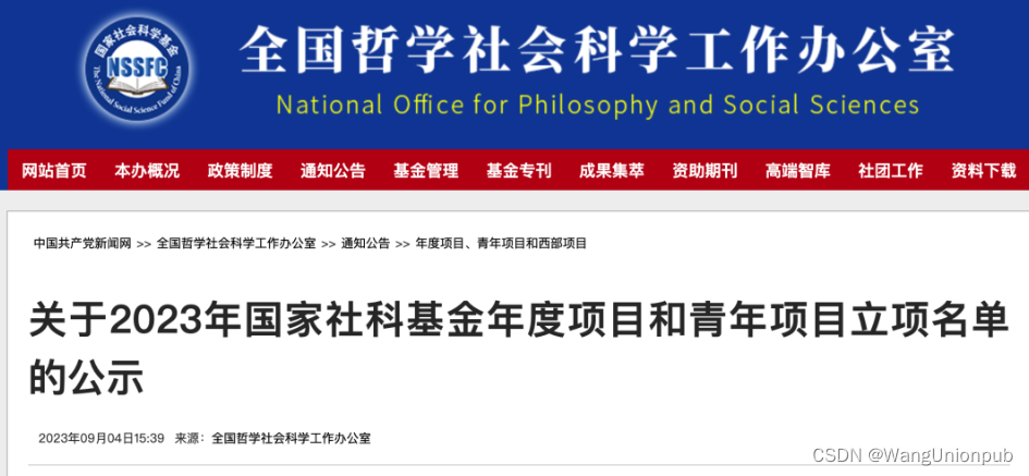 2023年9月4日,全国哲学社会科学规划办公室发布了《2023年国家社科基金年度项目和青年项目立项名单的公示》。