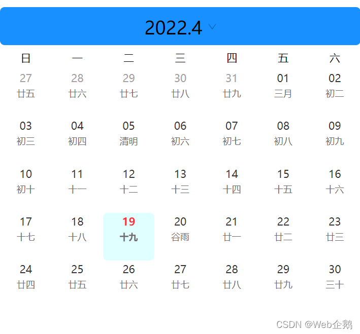 原创 自写日历(周日历,农历节日节气)