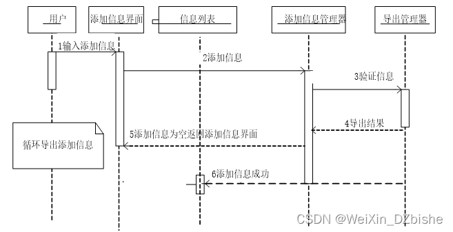 管理员以及用户登录后均可进行添加信息操作,添加信息模块顺序图如图4-4所示。