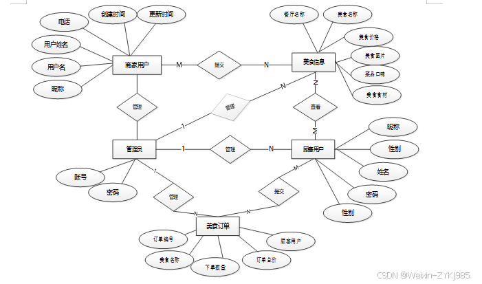 图3-2 基于springboot的美食推荐小程序E-R实体关系图