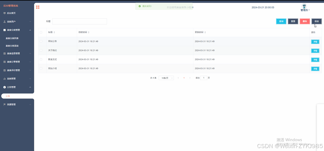 公告管理: 管理平台发布的公告信息,包括添加、编辑和删除公告等操作。