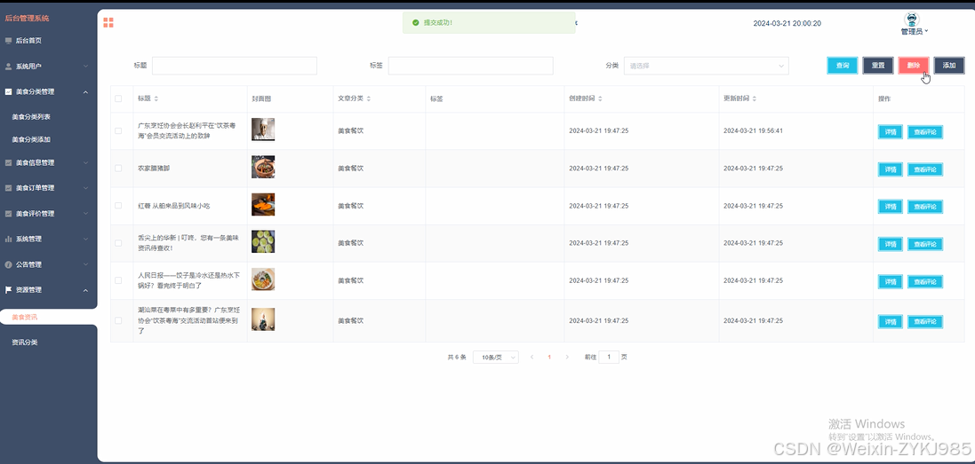 美食资讯: 管理平台发布的美食资讯内容,包括添加、编辑和删除资讯信息。