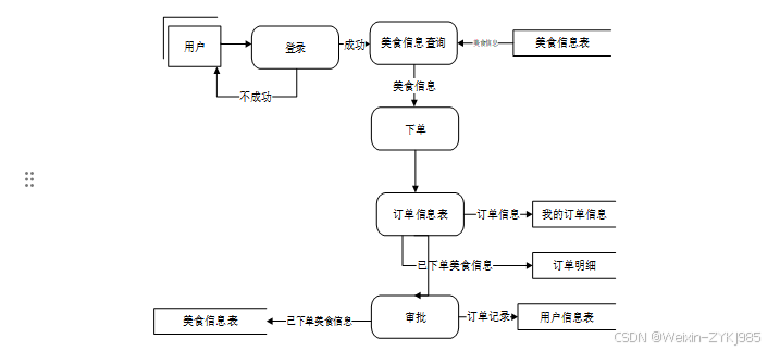 基于springboot的美食推荐小程序主要的目的之一就是实现用户线上美食下单,图2-1就是系统的数据流图。