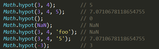 Math.hypot()会把非数值参数转换为数值,若有一个参数不能转为数值就返回NaN.