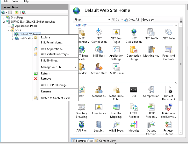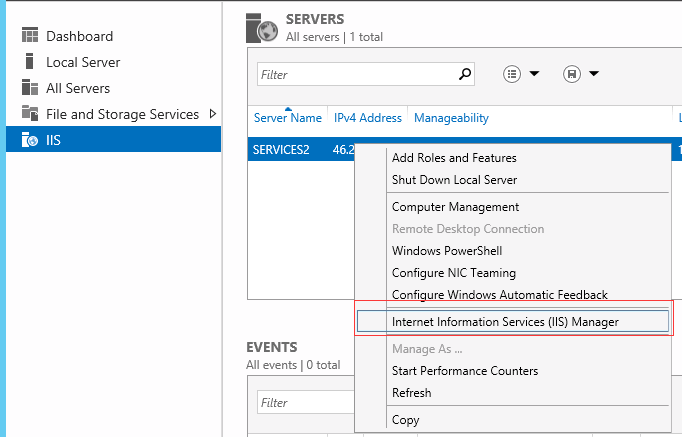 1. 确保已经安装了IIS,选中要操作的server,右键 选择 下面红框