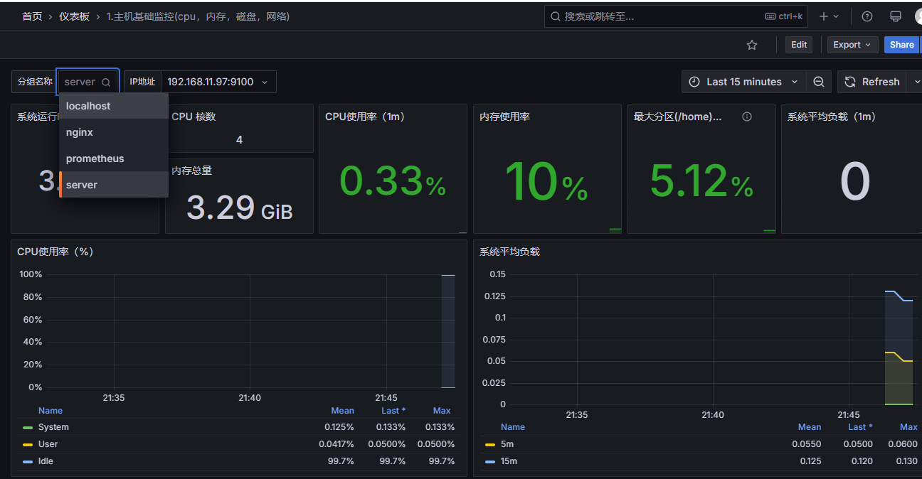 3台主机(1台安装prometheus、1台安装grafana、1台安装模拟业务)