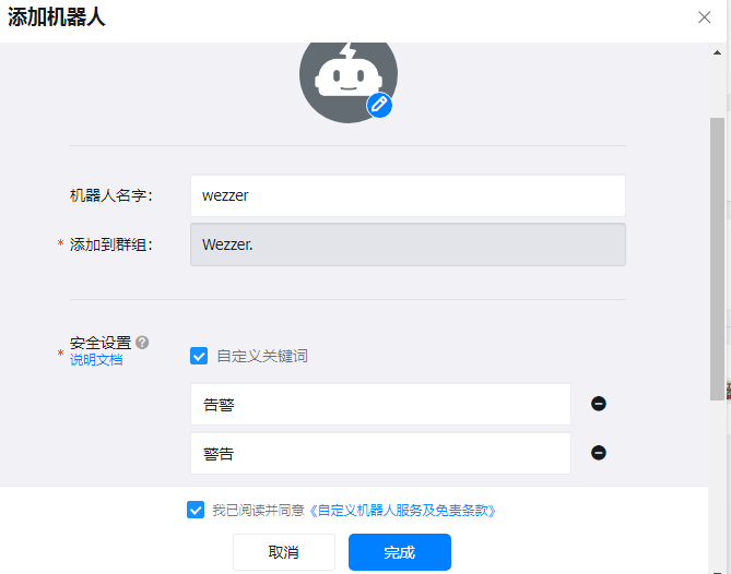 -d '{"msgtype":"markdown","markdown":{"title":"测试告警","text":"### 测试告警(告警)\n#### 详情:测试 关键词匹配"}}'
