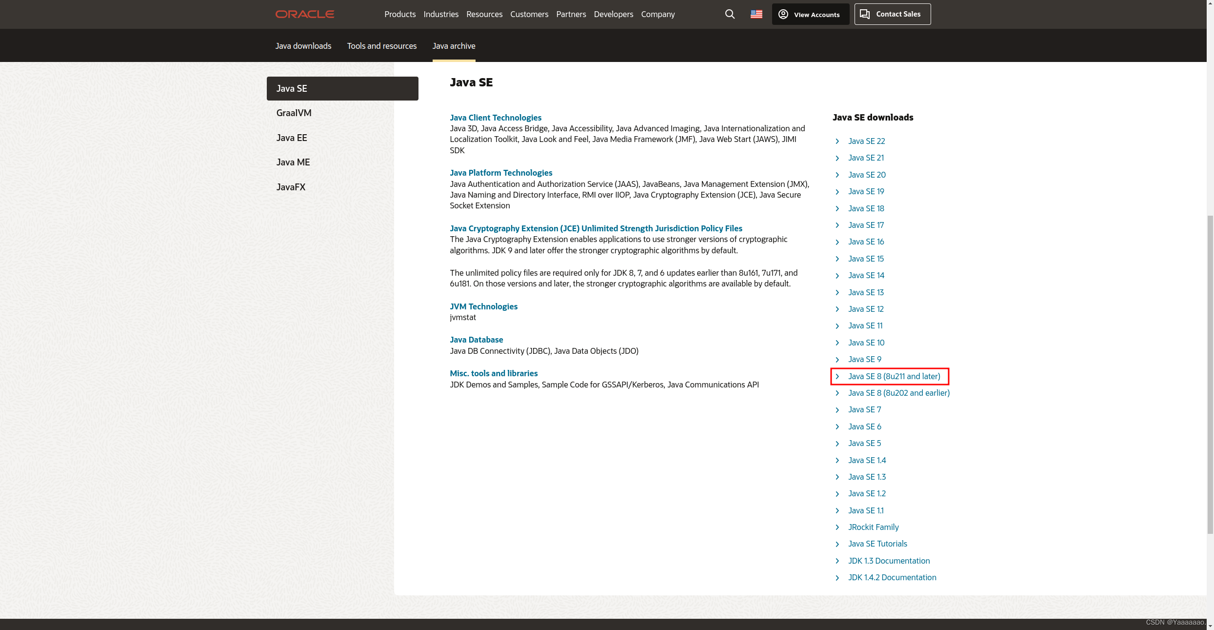 往下拉在右侧选择需要安装的JDK版本,这里有多个JDK版本供选择