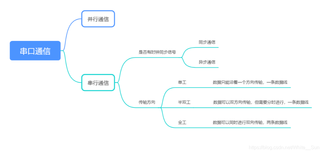 对于串行通信,又按照是否有同步时钟和收发间的数据传输方向分成两大类;