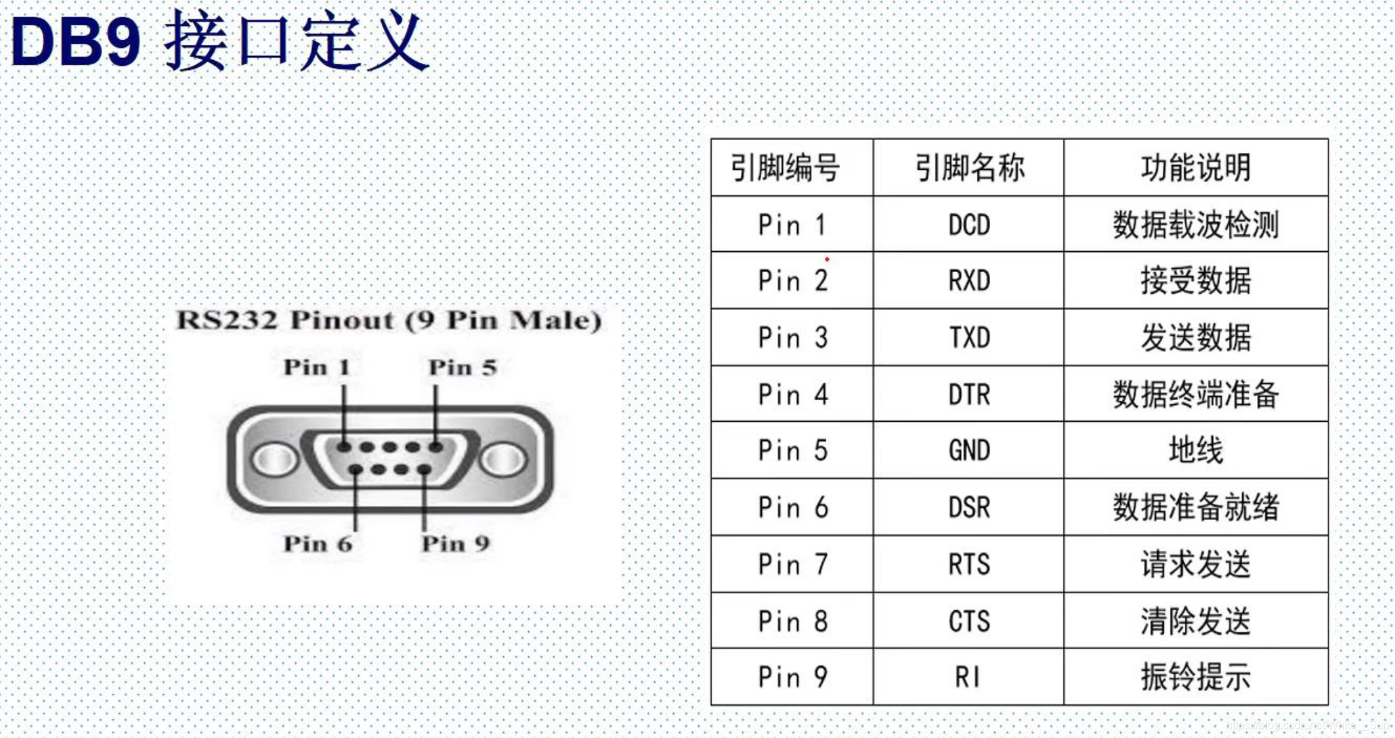 常见接口类型:DB9,一般只使用pin2,3,5